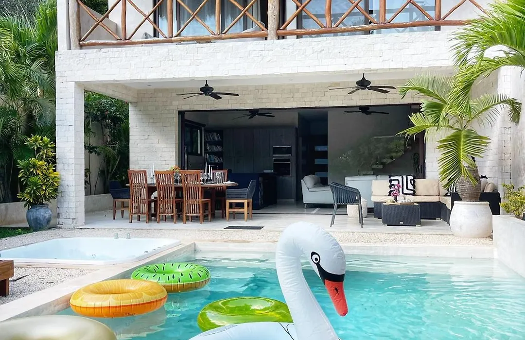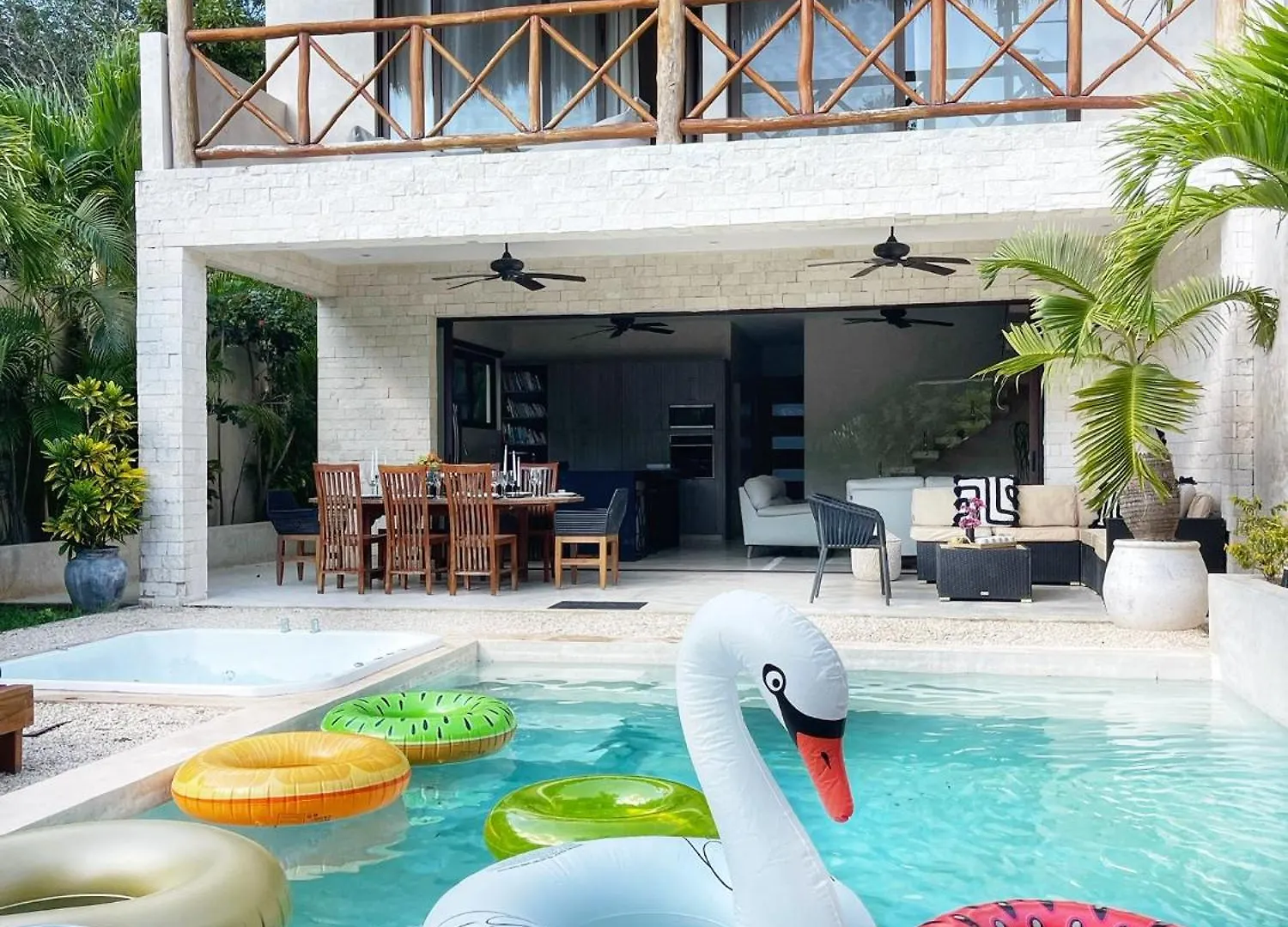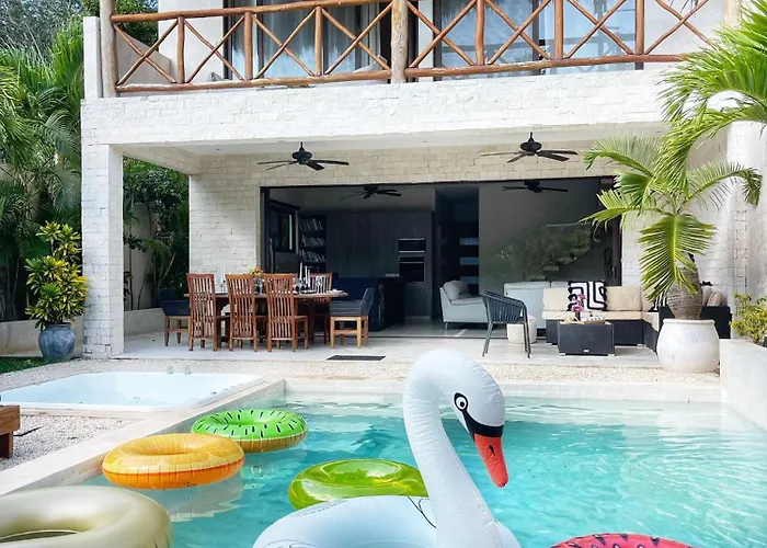 Situata a 3 km dalla Spiaggia pubblica Las Palmas, la villa Luxury House Tomanoa - 10Pers - 4Rooms - Pool - Hotjacuzzi - Speed Wifi -Waterfall Tulum vanta una piscina privata con un solarium e una jacuzzi. Dotata di una terrazza, questa villa si trova a 10 minuti in macchina dal Rovine Maya di Tulum.